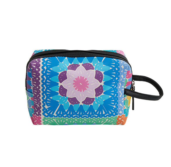 This colorful printed toiletry bag is the perfect blend of style and practicality. Crafted from durable, water-resistant fabric, it features vibrant, eye-catching patterns that add a touch of personality to your travel essentials. It’s easy-to-clean, fully lined and has a handle for easy carrying.