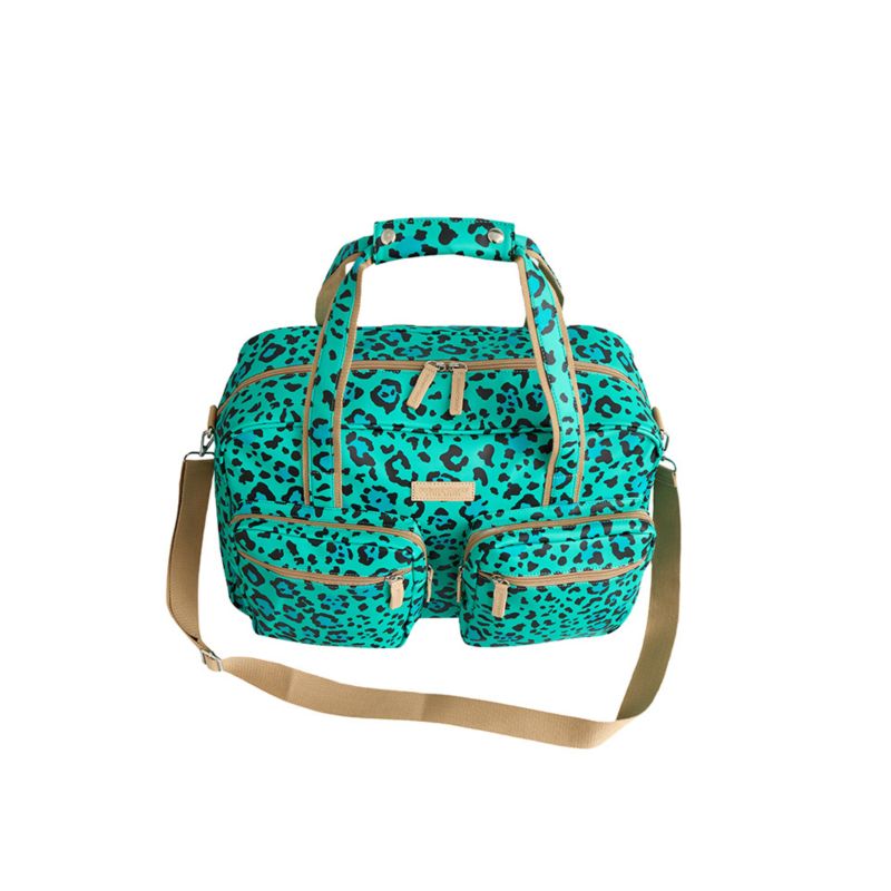 SoGood-Candy Weekender Bag - Aqua Green Leopard